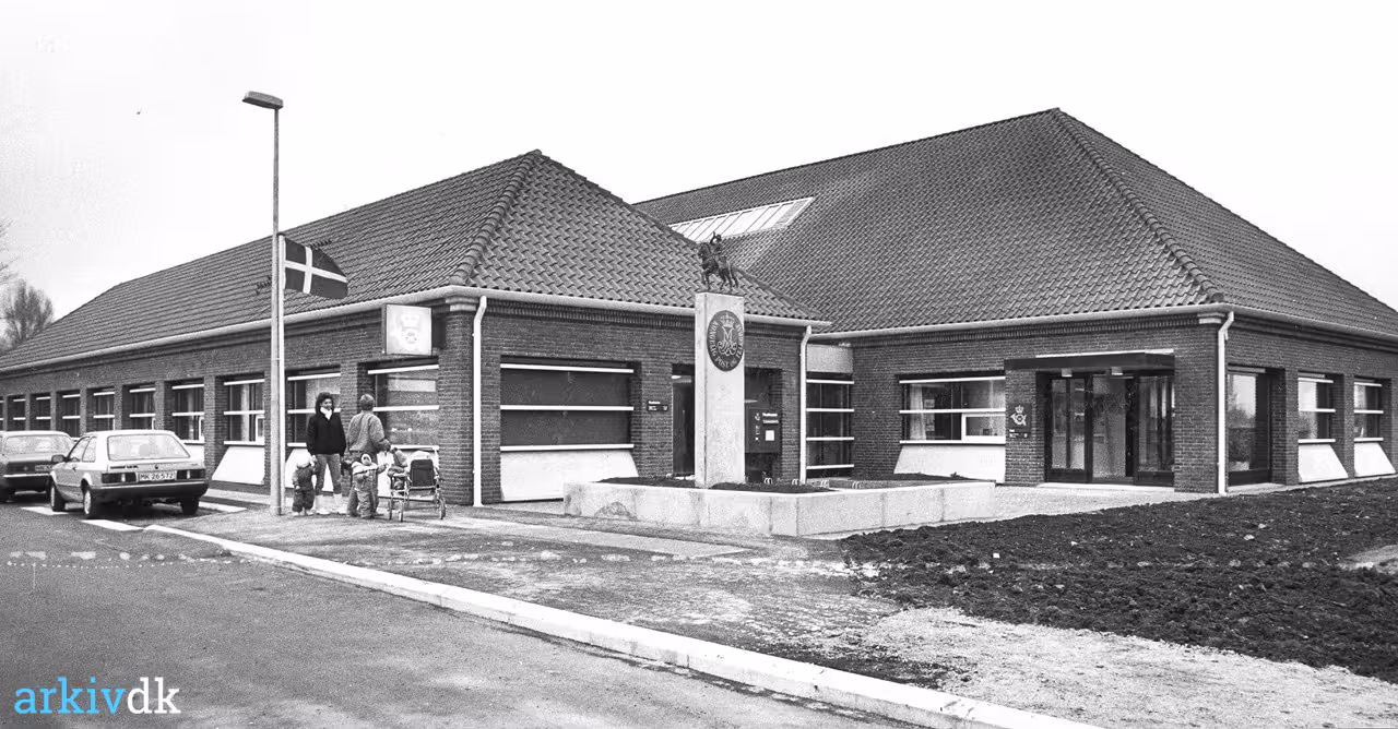 Hedehusene Postkontor, Hotelvej 11 Foran indgangen ses Postrytteren, udført af Johannes Bjerg