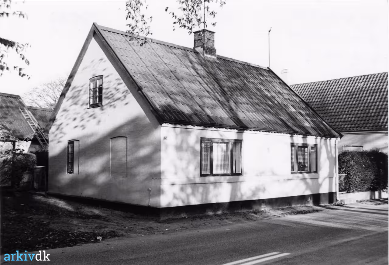 | Beskrivelse | Melby - Hus, have, skorstene, træer |
