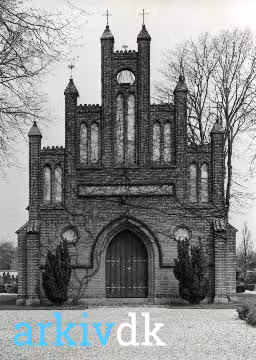 Beskrivelse Kirkegårdskapellet med facaden mod vest.