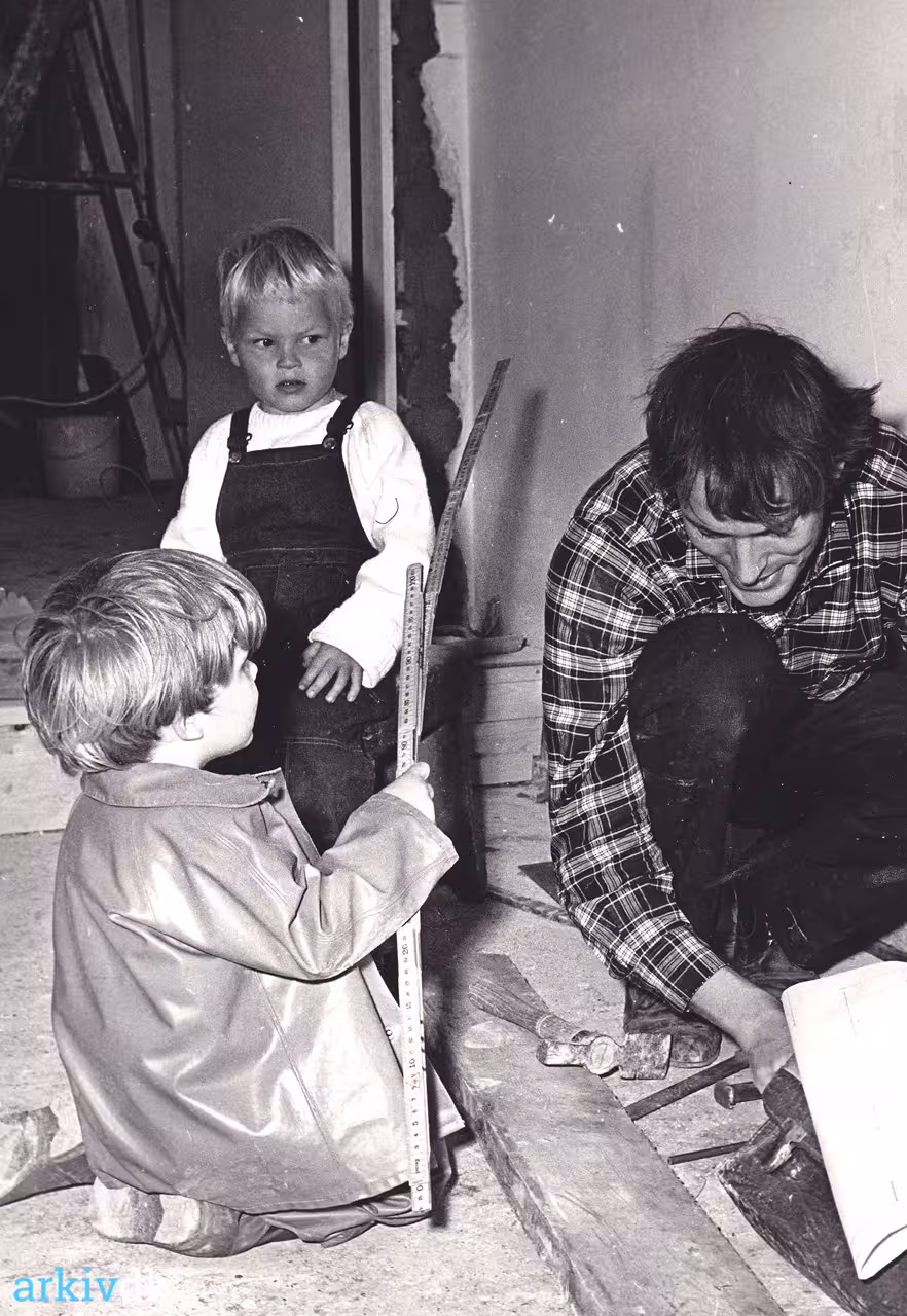 Beskrivelse Børn hjælper til ved byggeriet