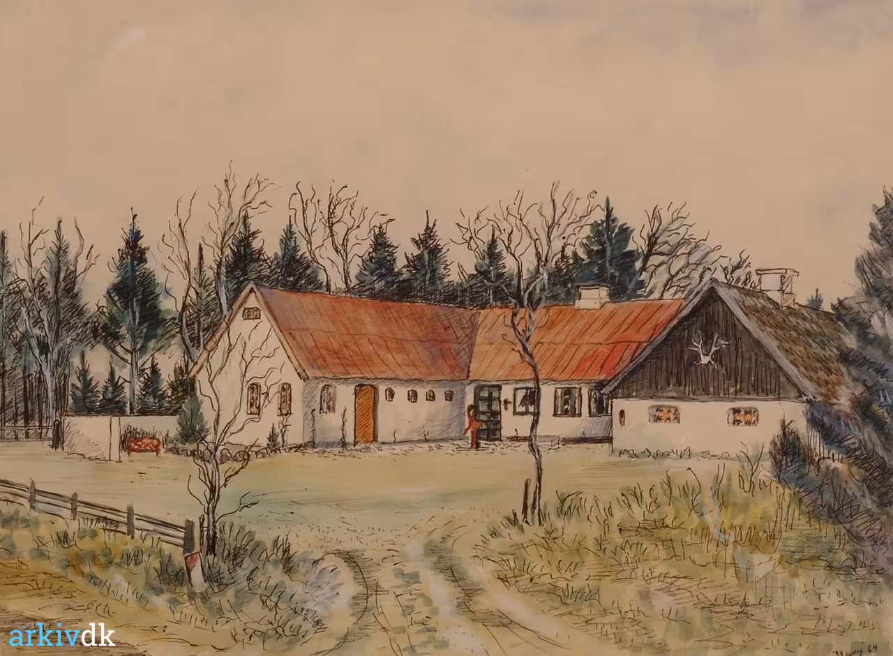 Beskrivelse Digital foto af akvarel af gården "Heden", Ravnholtvej 14, Ravnholt Hede