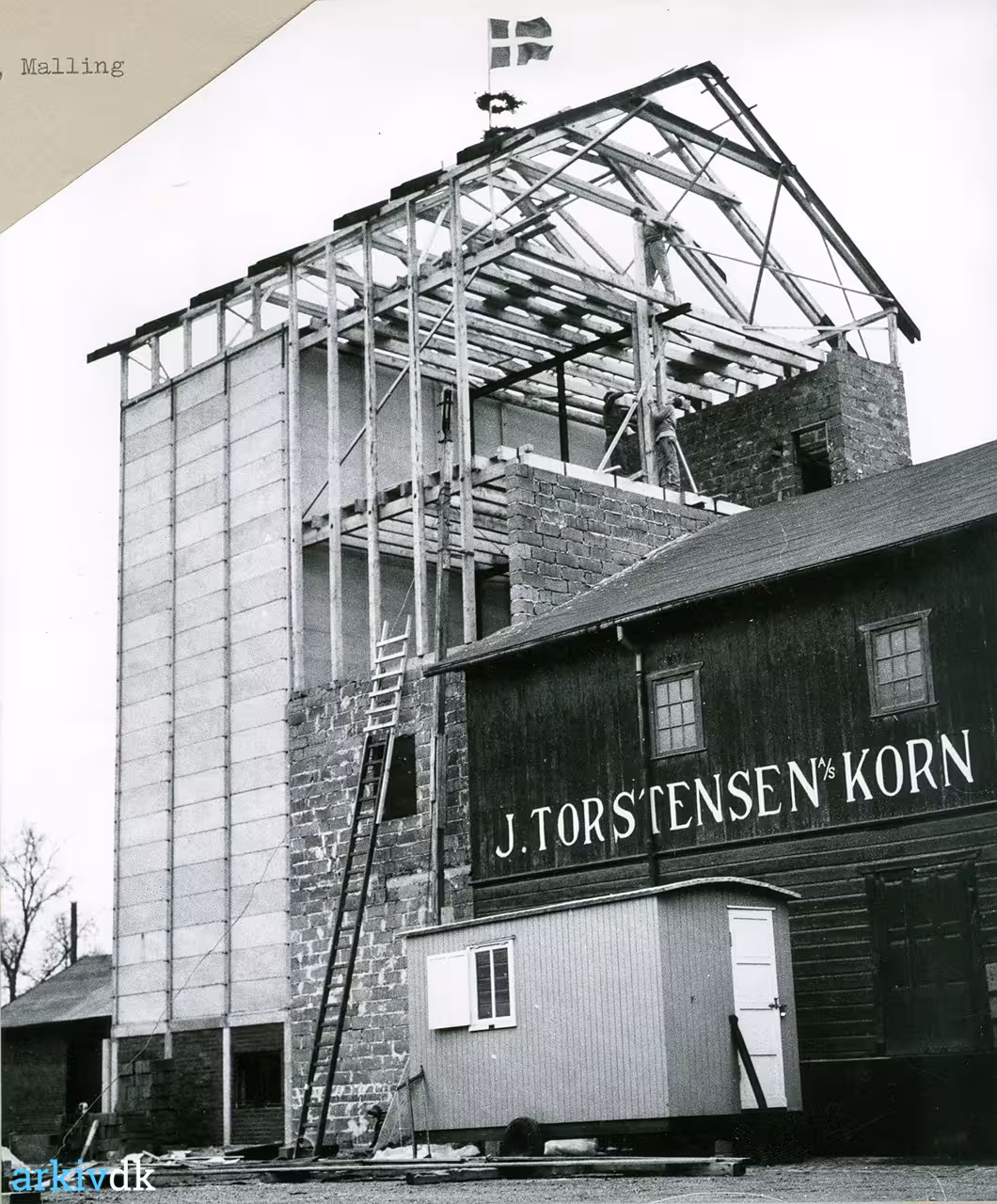 Beskrivelse Rejsegilde på silo hos J. Torstensen A/S, Malling.