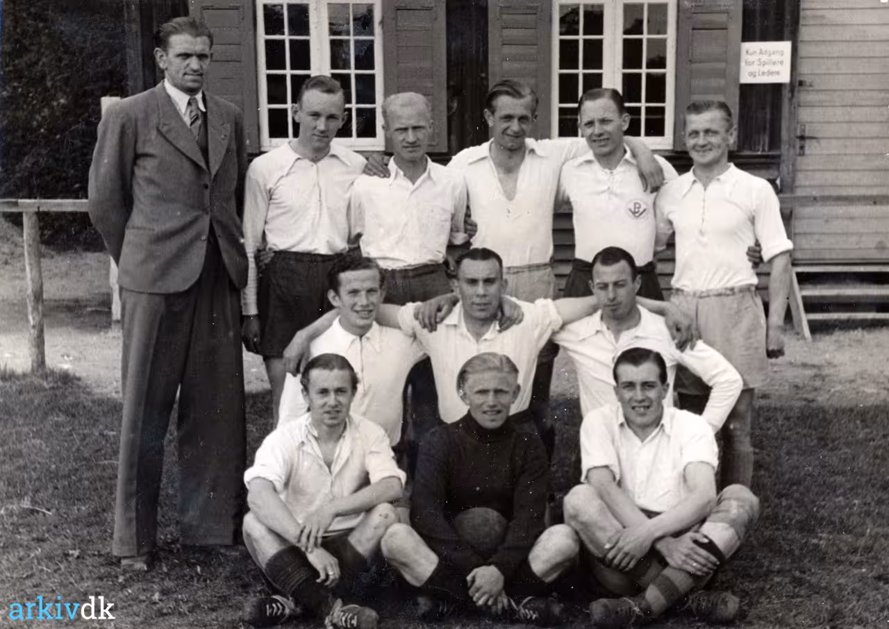 Bageste række fra venstre: Robert Christensen "Lange Robert" (leder), Hans Jensen, Juul Nielsen, Kaj Andersen, Poul Kjeldsten og Bruno Højfeldt. Midterste række fra venstre: Ingemann Christensen, Arnold Pedersen "Nold" og Emil Kjeldsten.. Forreste række fra venstre: Egon Ottesen, Erling Olsen og Tage Vestergaard. Emil Kjeldsten er født den 31. december 1915. Død den 8. juli 1974. Bruno Højfeldt er født den 4. marts 1909. Død den 7. oktober 1984. |