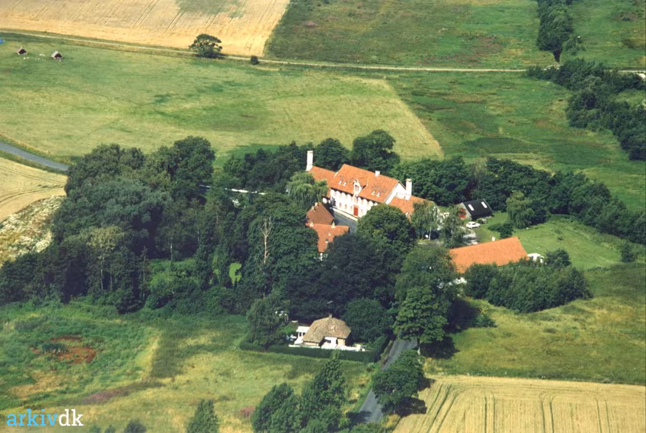 Luftfoto af Nive Mølle set fra sydøst 1993. Møllen ligger i et sving på Møllevej. I baggrunden til venstre ses Nivå Fåreavlerforenings får og fårehuse. Nive Mølle er det eneste minde, der er tilbage om Nive Landsby. Gennem byen løb Usserød Å, der lige siden middelalderen har været udnyttet til mølledrift. De nuværende bygninger stammer imidlertid fra 1890erne, hvor møllen tillige var indrettet som bageri (maskinbageri). Også Nivaagaards mejeri flyttedes dertil, og det fungerede frem til 1908. Selve mølledammen er i tidens løb blevet tørlagt, ligesom erhvervet er ændret, idet møllen har huset flisefabrik, keramikværksted og to handelsselskaber. I 1985 blev møllen restaureret af Henrik Lisberg Nielsen og Jørgen A. Nielsen. |