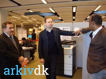 Beskrivelse Hussein Arac, forsvarsminister Nicolaj Wammen og Sheikh fra Folkeinformation.