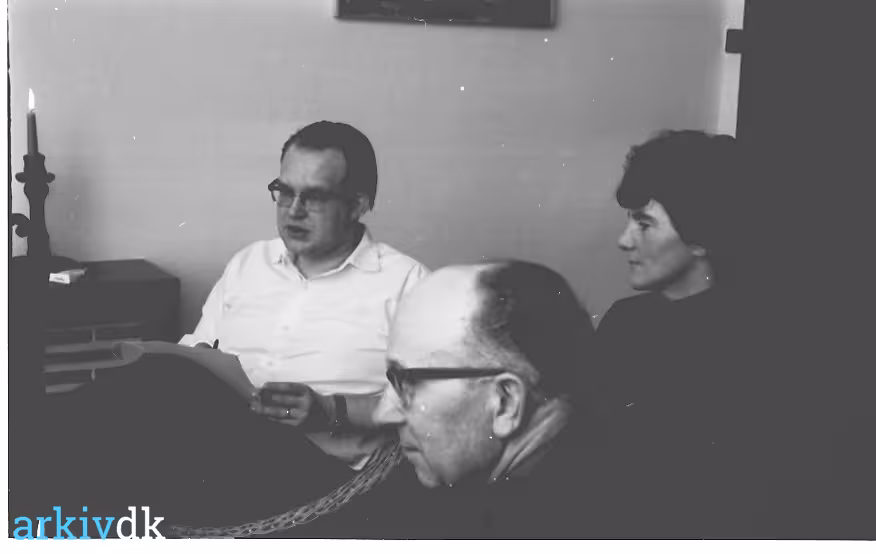 | Beskrivelse | Tre personer, t/v chefredaktør Poul Erik Søe, Kielgastvej 15. 15-28 februar 1966. |