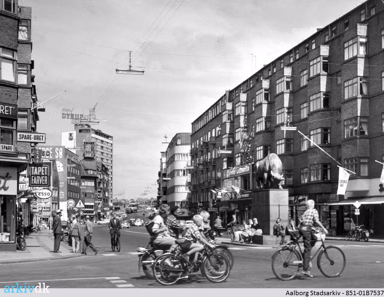 | Beskrivelse | Vesterbro set mod nord fra Urbansgades udmunding. Cimbrertyren samt Restaurant Ambassadeur og Tyroler-Landsbyen, Vesterbro 76, til højre. Limfjordsbroen og højhuset med lysreklamen Dyp i Dyrups, ved broen i baggrunden.