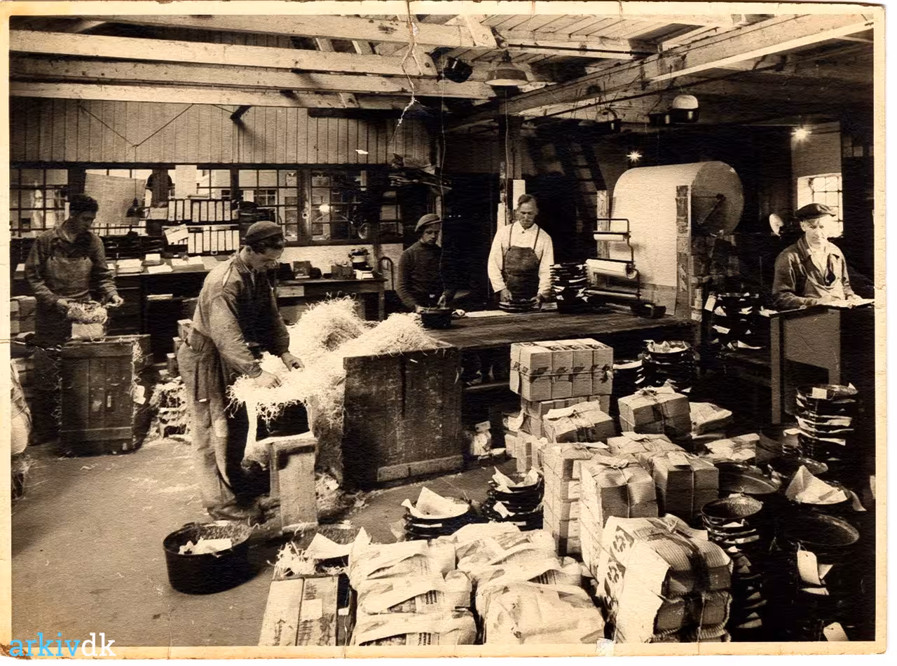 | Beskrivelse | Anker Heegaard, værksted, interiør, pakkeri, støbejernsgryder, støbegods, arbejdere, ukendt, pakker, forsendelsen |