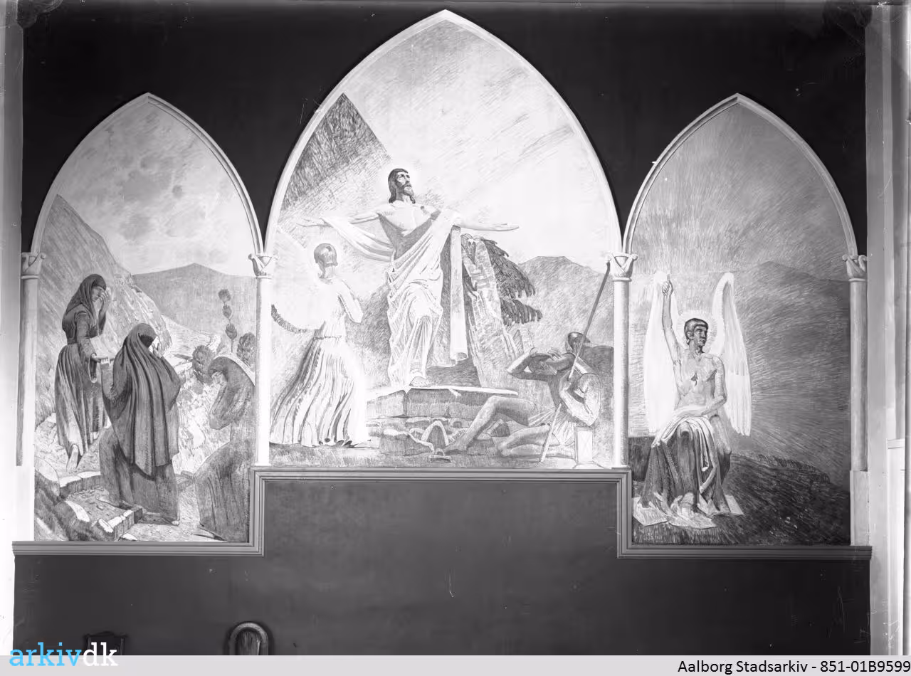 Religiøse billeder fra Almen Kirkegårdens kapel. Altertavle.