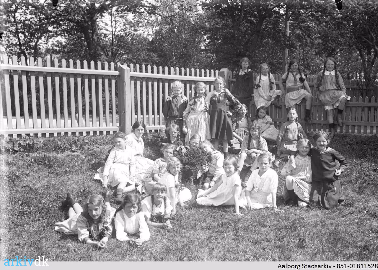 Beskrivelse Aalborg Højere Pigeskole, Gammel Kærvej, 5. klasse i haven.