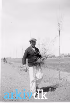 Byggeri af Brøndbyvester Centralsko- le. Træer plantes, langs den senere Ringvej |