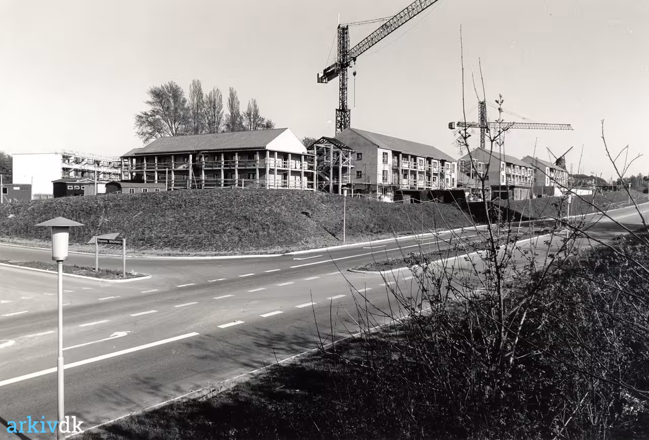 Beskrivelse Birkeparken under opførelse ved Kammerrådensvej og Hørsholm Allé, 1985