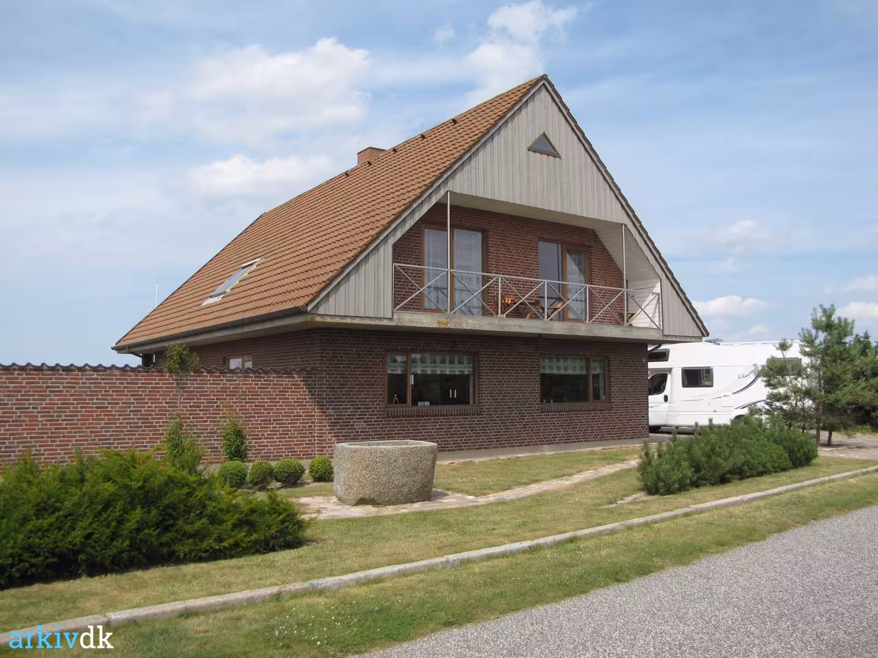 Her lå tidligere et lille fiskerhus som Niels Bach ejede, men det blev revet ned først i 1960’erne, da der skulle bygges nyt. Det nye hus blev bygget af en entreprenør fra Esbjerg, og da man ikke måtte bygge i to etager havde det høj tag, hvor loftsrummet så kunne udnyttes.