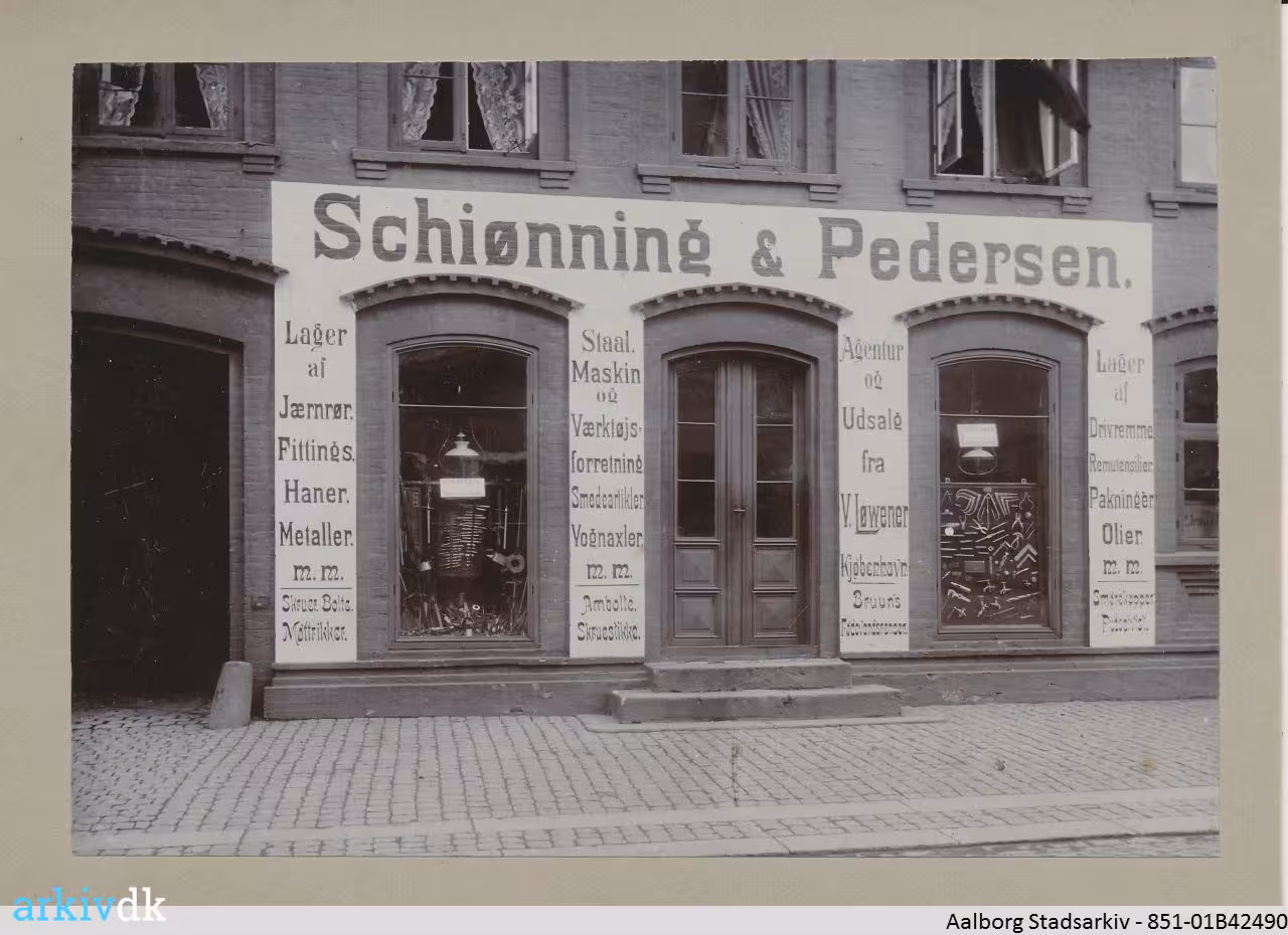 | Beskrivelse | Schiønning & Pedersen, Jern- og Stålhandel, Vesterågade 17, facade med indgangsdør. |