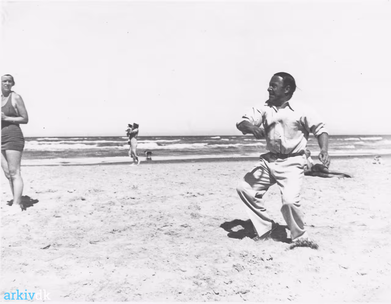 Lønstrup Strand Turistvæsen Ringspil på stranden. Skuespilleren Hans W. Petersen |