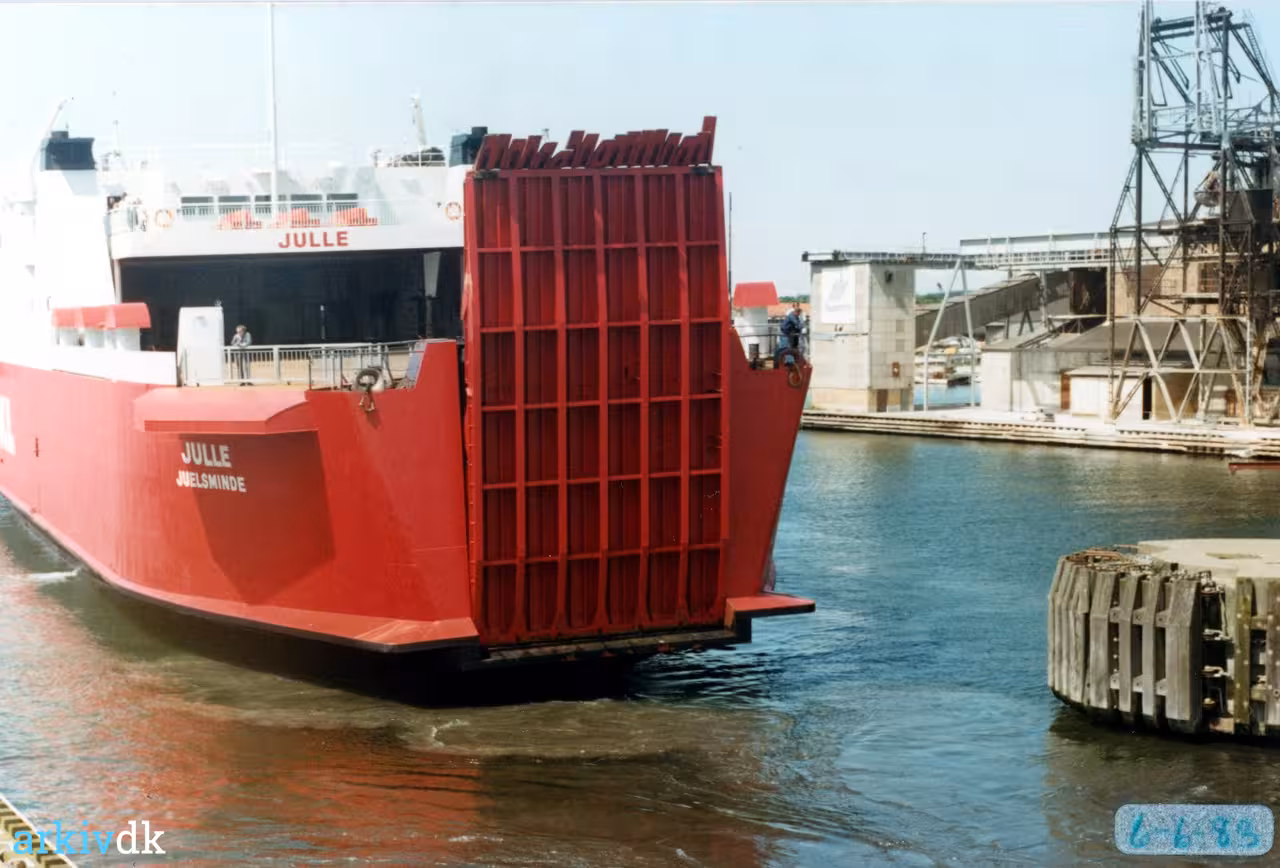 95 Julle set fra agter styrbord side efter at have svajet på vej mod færgelejet i Kalundborg Foto 1983 Pressefoto