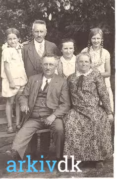 Fra venstreforrest Kristian Olsen, hans kone Kathrine, bagved Agnethe datter af Kristine og Karl Jacobsen, og Ellen datter af de førstnævnte på Himmelbjerget. |