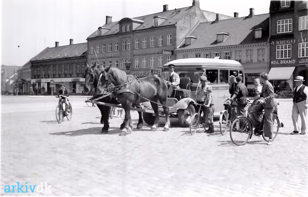 Rutebil med hesteforspand på Nytorv