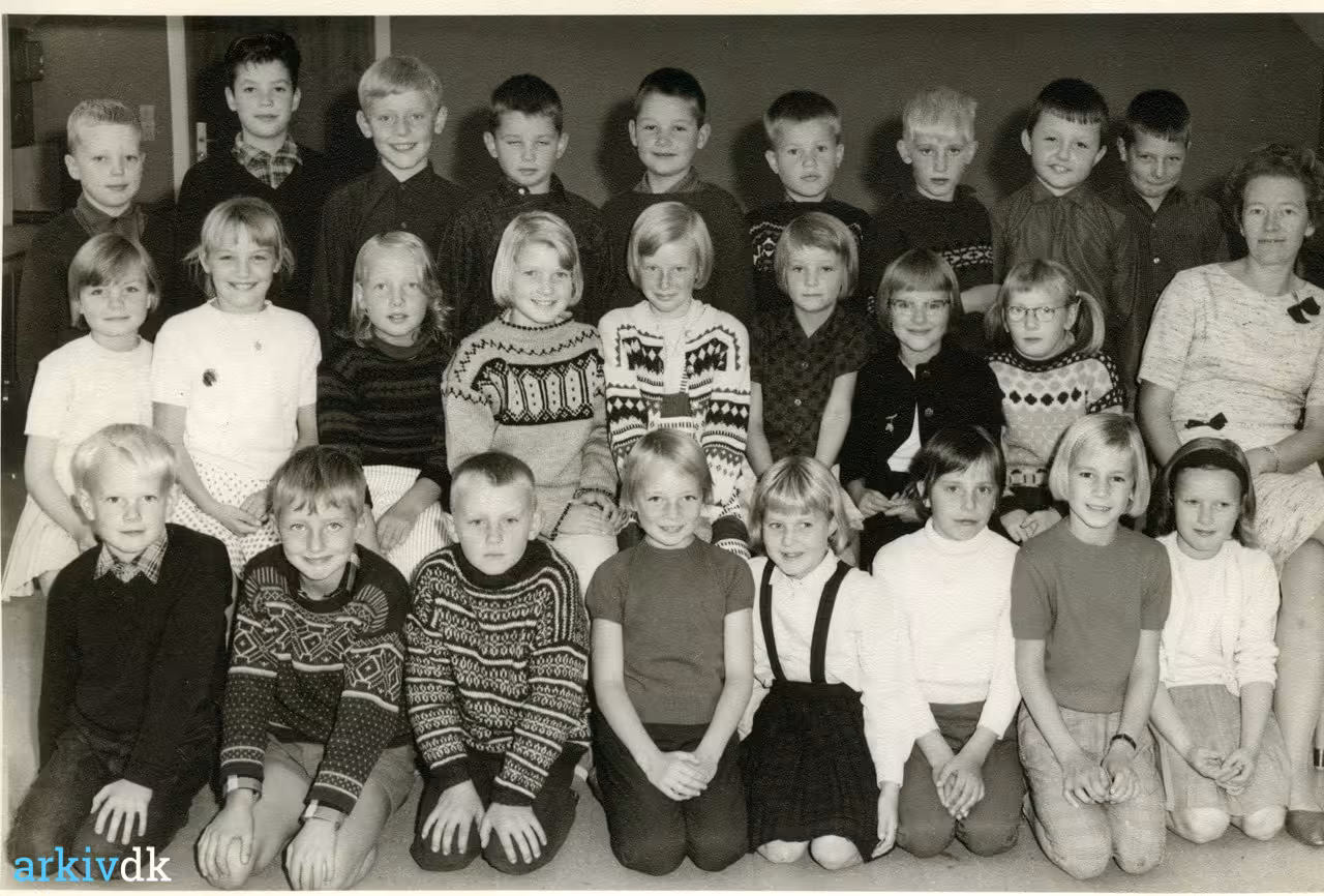 Bageste række fra venstre: Arne Birkø, Hans Sand Kristensen, Henrik Rasmussen, Karsten Juelsgaard, Christian Boel, Peter Møller, Niels Erik Guldberg Madsen, Bent Hillersborg, Johannes Agerholm. Midterste række fra venstre: Margrethe Andersen, Hanne Korsgård, Evy Gadgaard, Gitte Møller, Inge Hansen, Tove Jørgensen, Britta Jørgensen, Rosa Jensen, lærer fru Danielsen. Forreste række fra venstre: Knud Kornberg, ukendt, Erik Nielsen , Inge Knudsen, Hanne Pedersen, Ea Larsen, Jette Overgaard, Anna Thomsen |