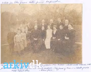 Bageste række fra venstre: Ukendt, Jens Andersen, Trine og Peter Johansen, Hans Andersen, ukendt måske Clausen fra København, onkel Alfred Kbh., Oluf Jensen, konfirmandens bror? Forreste rækkefra v. : Ruth og Emma med deres mor Hedvig Andersen, onkel Alfreds kone, Peter Jensen og kone Martha Sofie Andersen, en af de sidste 3 kvinder er Stine Jensen. |