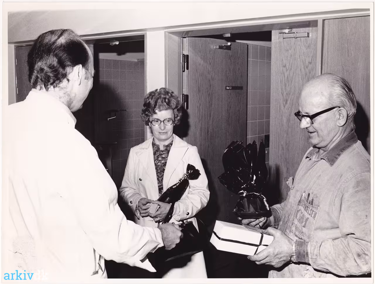 Ludvig Nielsen mangeårig medarbejder og værkfører hos Firmaet Morten Nielsen og Elin Bjørnholt, fra Aars modtager gaver i dagens anledning. |