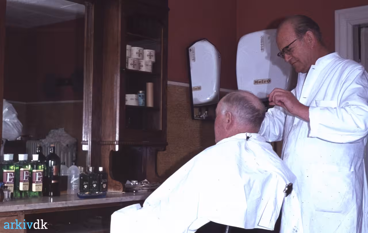 Bemærkning Personen i frisørstolen menes at være Ole Olsen, bedre kendt som Ole Fisker.