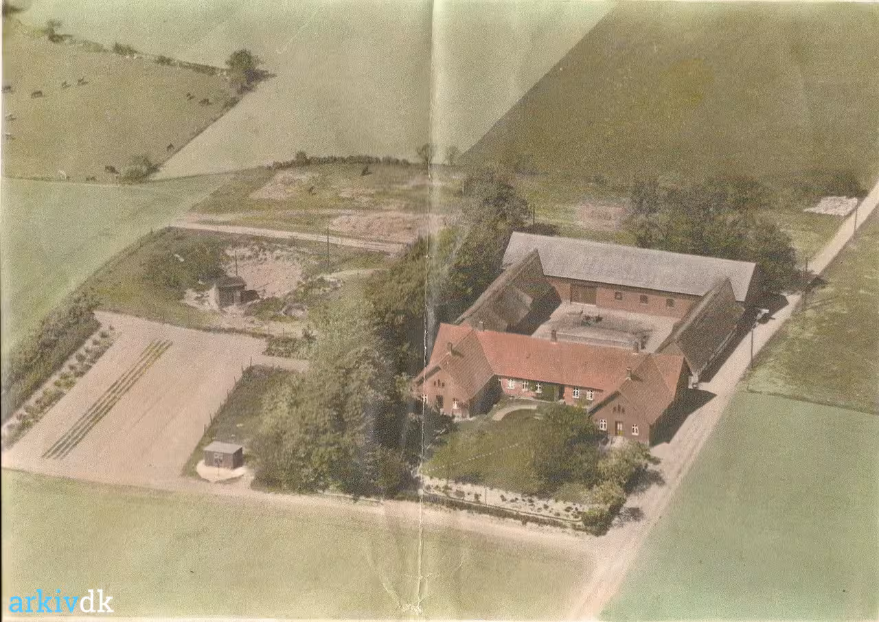 Tronkærvej 0a, Skødstrup Højgård Skødstrup Sogn Fattiggården Luftfoto i farver 1948