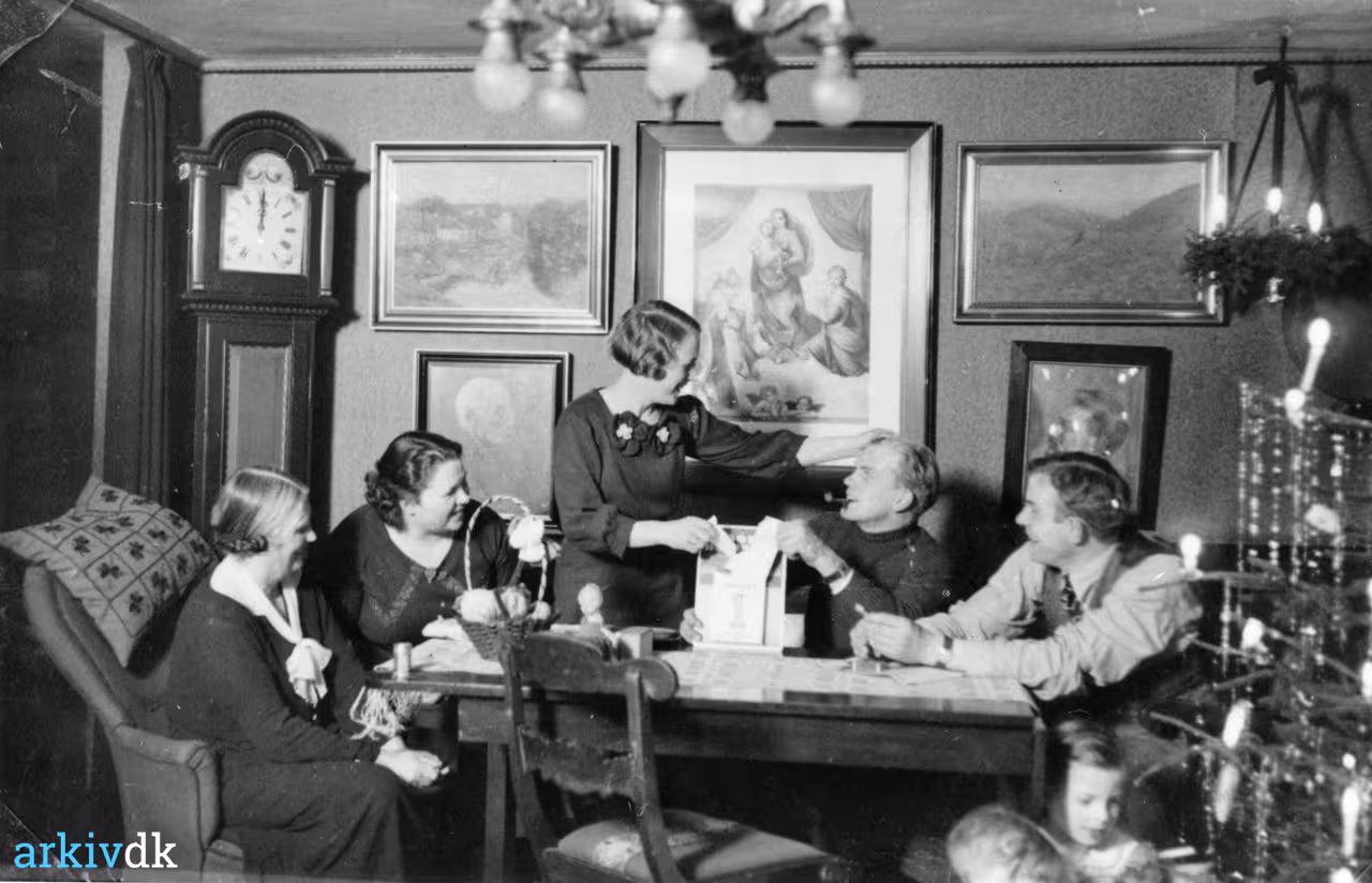 | Beskrivelse | Fra 1936. Nytårsaften hos maler Jens Olsen, Birkelse.