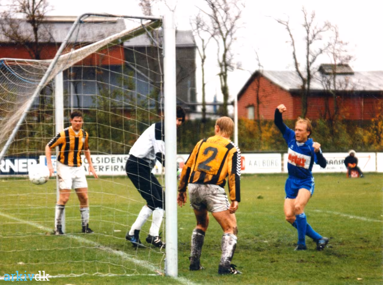 | Beskrivelse | Nørresundby Boldklub. Nørresundby vandt med 4-2 over Brønshøj den 11. oktober 1992. Målscorere var Erik Trude Jensen 2, Søren Larsen og Thomasberg. På billedet ses Bo Elver Jørgensen juble over et af målene. Det pikante ved den situation var, at Bo Elver havde spillet i Brønshøj, der således var hans gamle klub. |