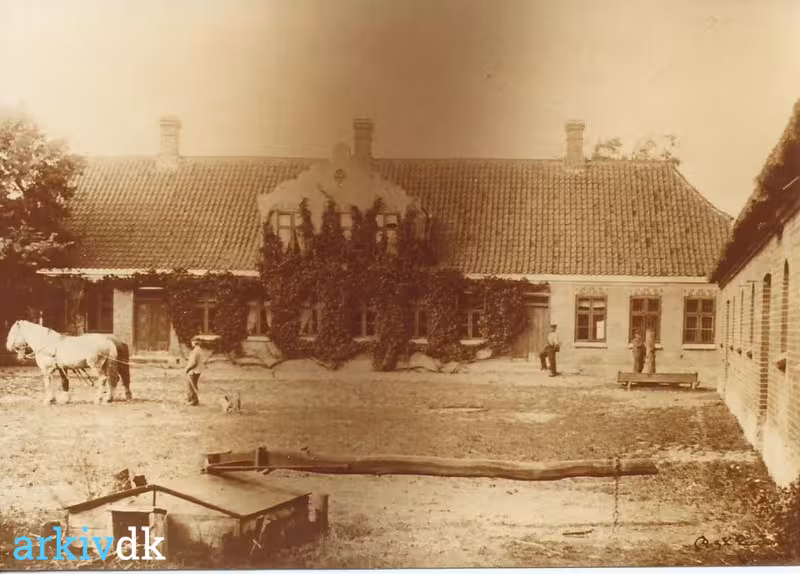 | Beskrivelse | Gårdinteriør med stuehusets sydfacade. hestegang. |