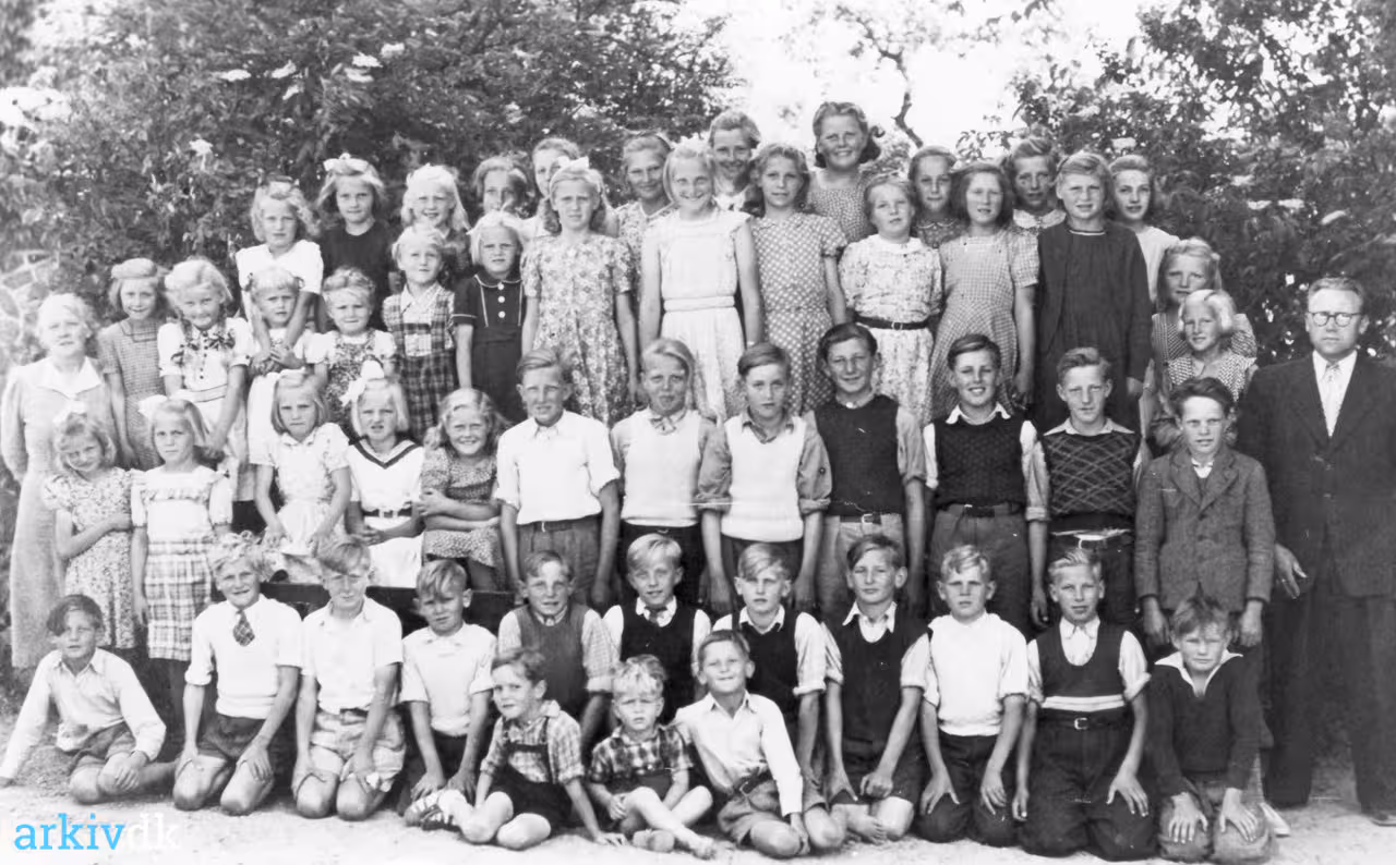 | Beskrivelse | Elevbillede Gravlev Skole 1947/48. Lærer Martin Foged og fru Dalgård. Navne ved original |