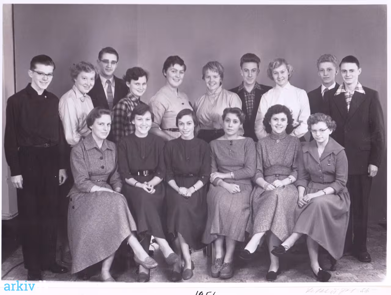 5 unge herrer og 11 unge damer. Bagerste række fra venstre: 1.Ole Berg Rasmussen 2.Ingrid Annelise Sørensen 3.Jørgen Gerhard Christensen 4.Inge Anna Christine Birch-Larsen 5.Tove Christensen 6.Ulla Vejlø 7.Gert Bjarne Jacobsen 8.Birthe Dam 9.Bent Anders Larsen 10.Poul Erik Nielsen Forreste række fra venstre: 11.Inge Larsen 12.Kirsten Helene Andersen 13.Hanne Marie Andersen 14.Inge Thaysen 15.Lissi Tove Hansen 16.Gurli Agnete Buch Hansen |