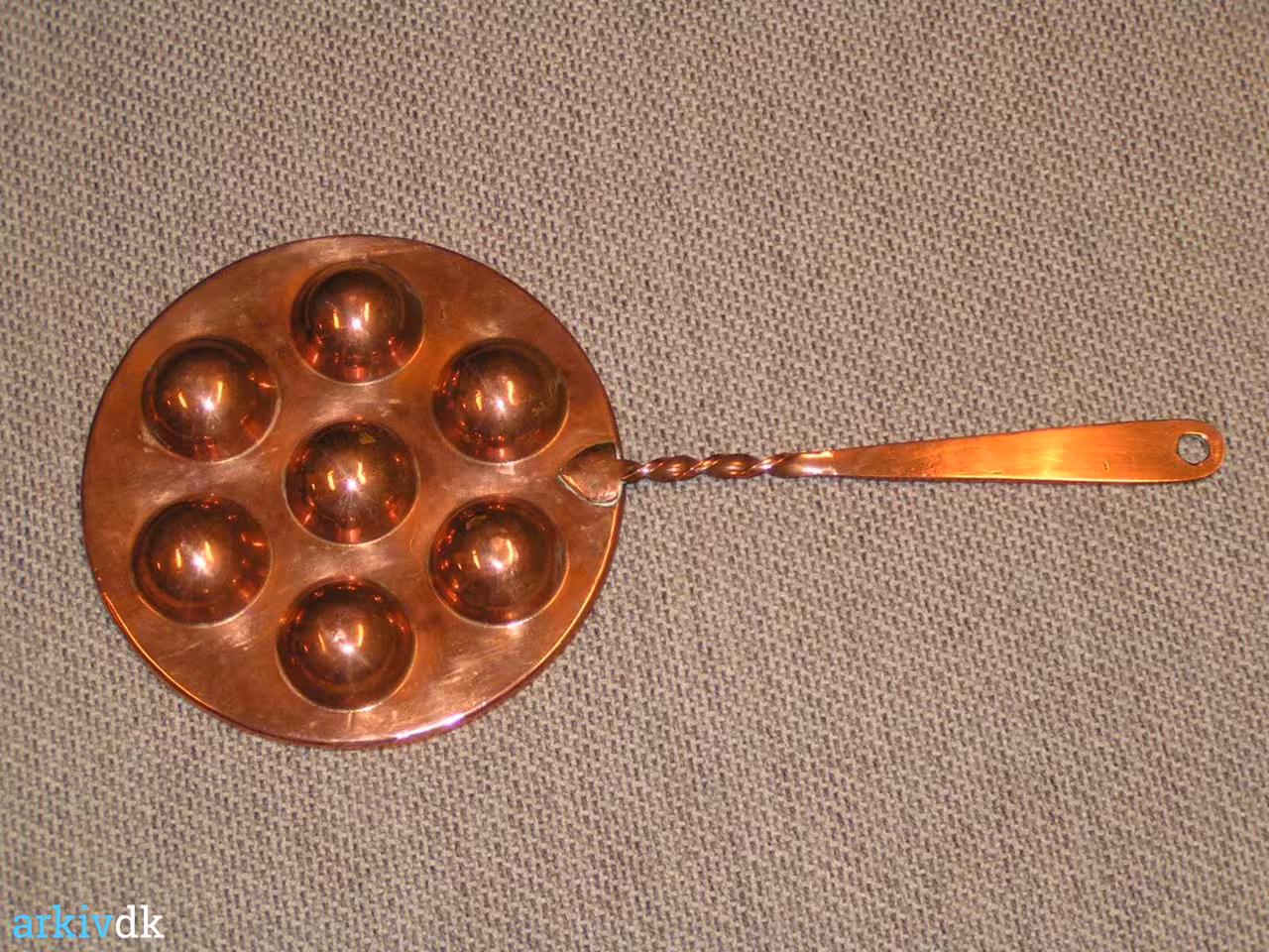 Bemærkning Æbleskivepanden er ikke brugt til bagning, men var en pyntegenstand i hjemmet