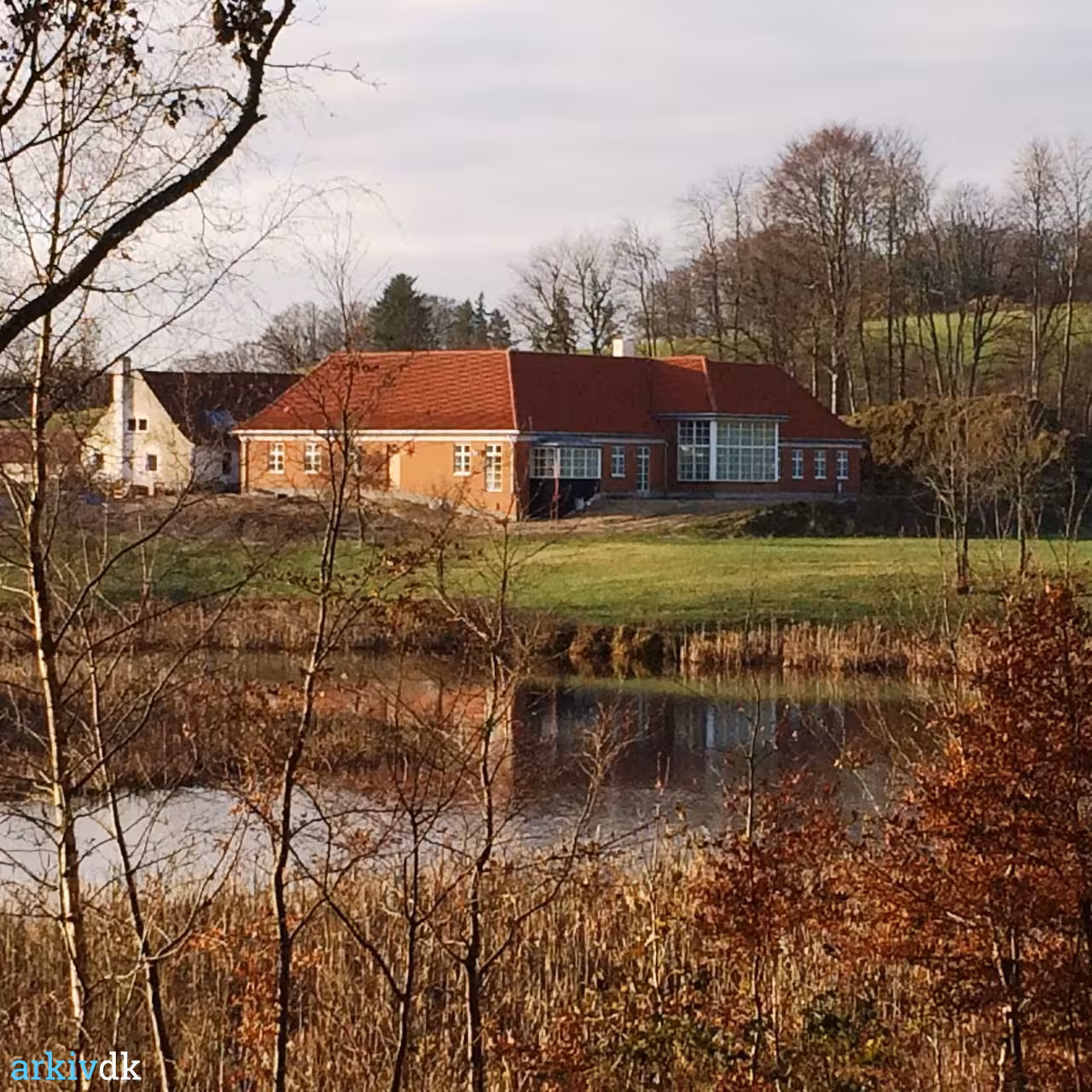 Beskrivelse Foto af det ny stuehus set fra markvejen - og det gamle (zoomet).