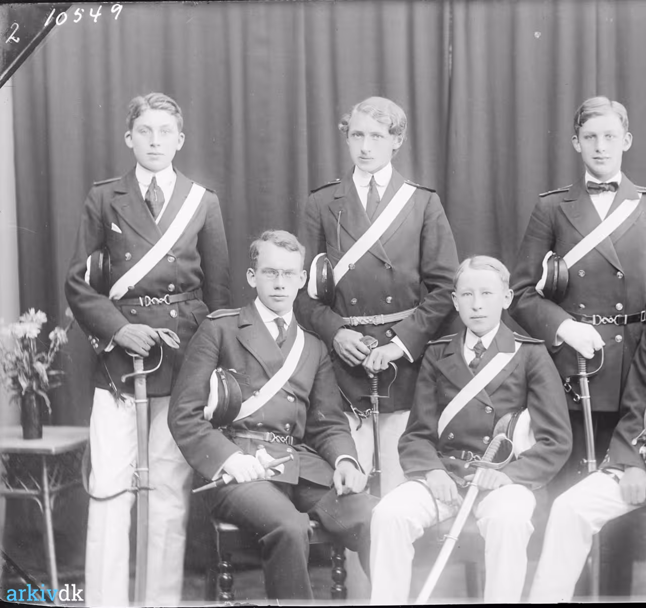 | Beskrivelse | Formentlig festuniform. Mørke jakker, hvide bukser. Hvid skjorte og slips. Hvidt skråbånd.. Kasketter under højre arm.
