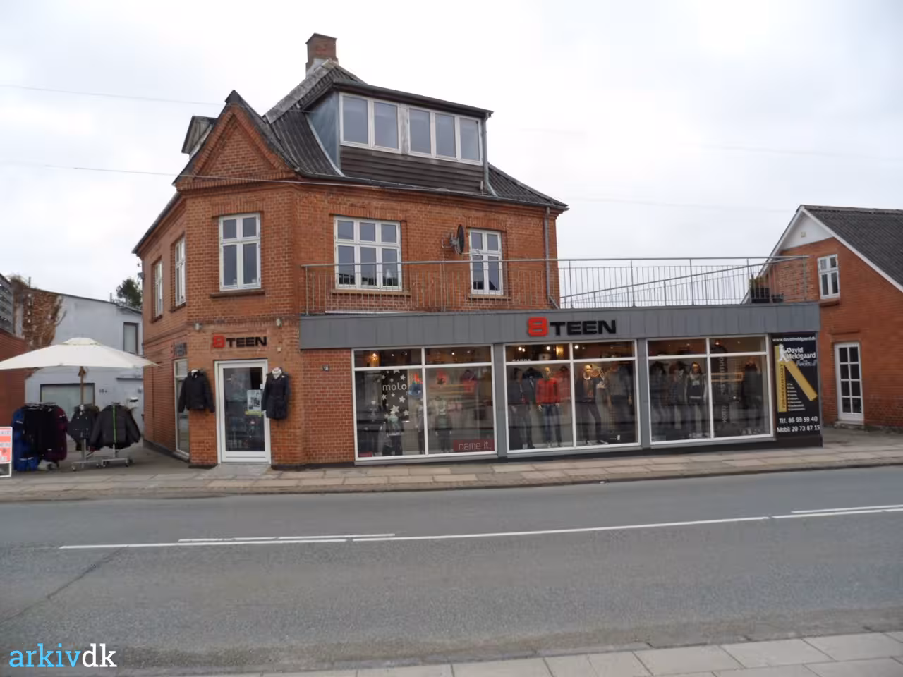 Ejendommen er opført i 1916 af gartner R. Udengaard Rasmussen som handelsgartneri og blomsterforretning. I 1942 overtog gartner P. Bregnhøj forretningen. Hornslet Blomster var fra 1957 ejet af gartner Thorvald Mikkelsen der senere solgte til blomsterdekoratør Lene Skov Petersen. I 2012 blev butikken flyttet over gaden til Byvej 1, og ejendommen blev afhændet og udlejet til butik med børne- og ungdomstøj.
