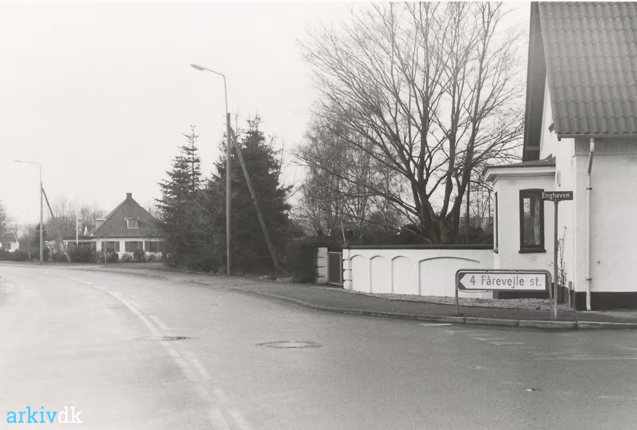 Hjørnet af Enghaven og Rådhusvej. Over for Asnæs Station. T. h. ses Enghaven 14. Byens Bager. Matr. nr. 1an. Næste hus (med spidst tag) Rådhusvej 6A, matr. nr. 1ag. |