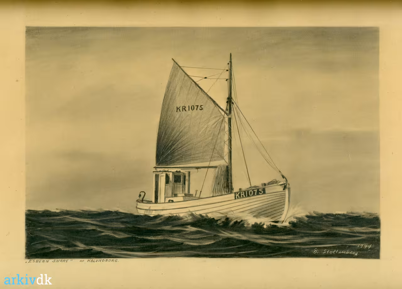 Fiskekutter KR 1075, "Esbern Snare" af Kalundborg. Ejer: Karl Andersen. Han fik tilnavnet, Karl Nyborg", da fiskekutteren var bygget i Nyborg. |