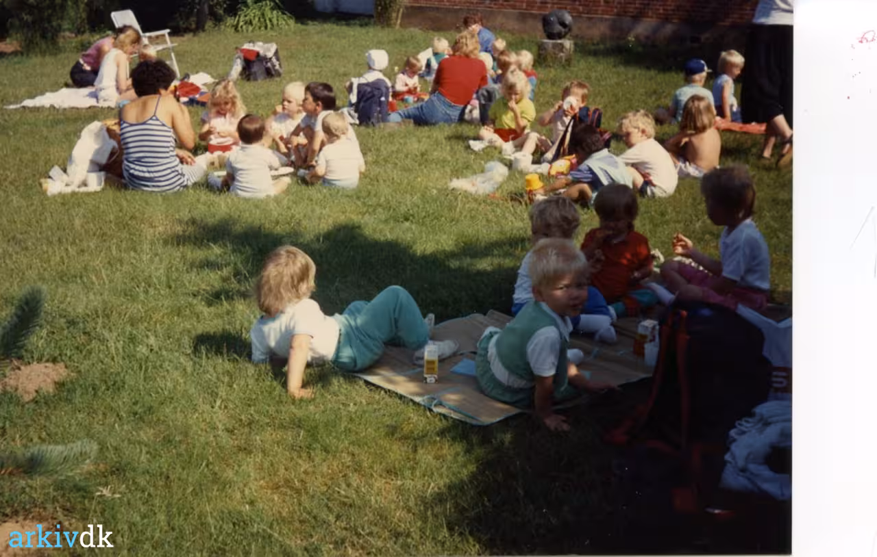 4 Eftermiddagskaffe Frokost lavede Dagmar, ta-selv bord. Sponsoreret brød fra Bagergården og Grundfør Bageri. Det var et hyggeligt afbræk af hverdagen, der var store søskende og egne børn og et naturområde og ingen biler og alle holdt øje med alle. Om aftenen kom forældrene med mad til ta-selv bord.