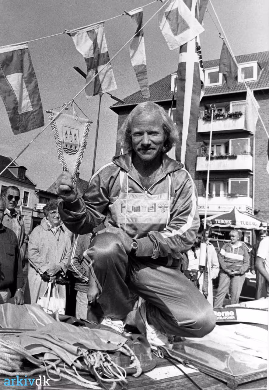 Færingen "Ro-Ove" viser standeren med Skanderborgs Byvåben