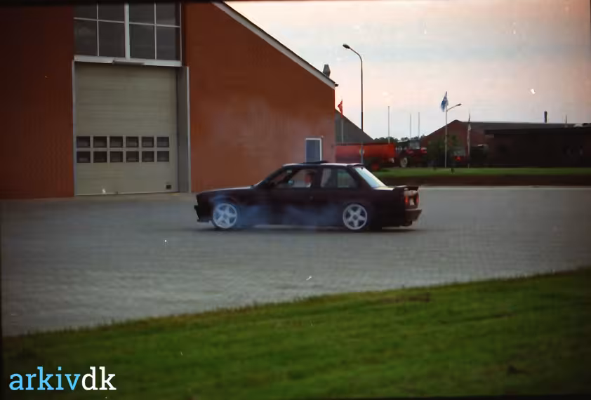 Beskrivelse En sej bil ved dækafbrændingen i aftes i Kjellerup.
