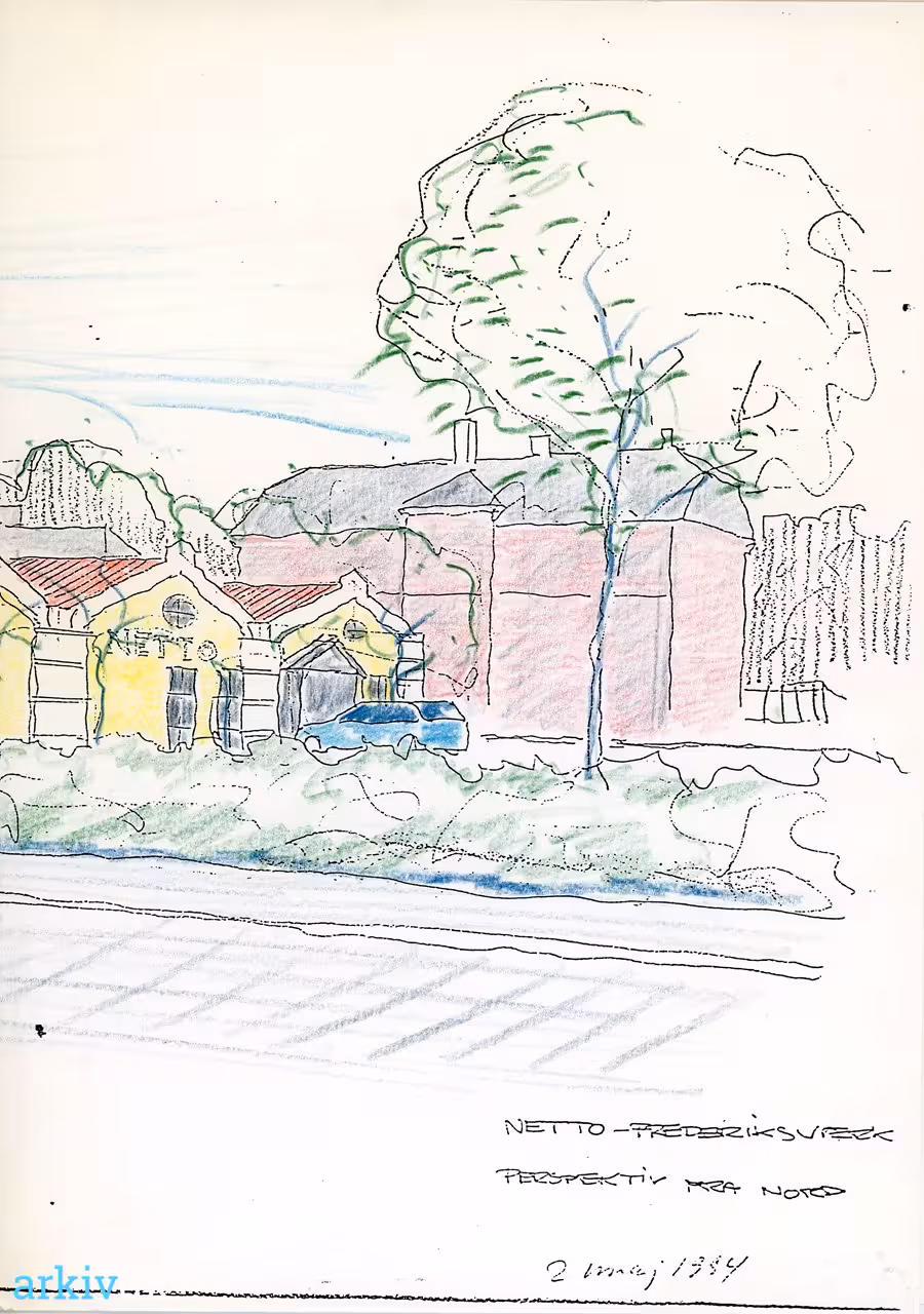 | Bemærkning | Forretninger, Frederiksværk, Netto, tegning af Netto, arkitektur, arkitekt Arne Meldgaard, rejsegilde, |