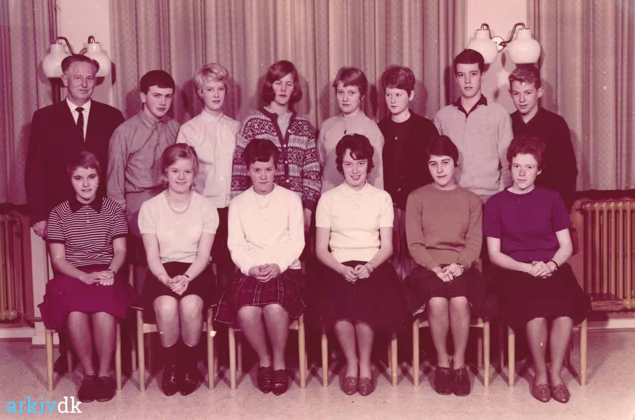 14 5. a med klasselærer Edvin Sevelsted Øverste række fra venstre: nr. 1 Thorkild Munk nr. 2 Peter Duch nr. 3 Villiam B. Nielsen nr. 4 Mogens Larsen nr. 5 Jan Petersen nr. 6. Knud Petersen mellemste række fra venstre: nr. 1 Irene Jensen nr. 2 Ukendt nr. 3 Gunhild Petersen nr. 4 Lone Jørgensen nr. 5. Bente Andersen Forreste række fra venstre: nr.. 1 Karen Jakobsen nr. 2 Grethe Pedersen nr. 3 Grete Henriksen nr. 4 Kirsten Søndergaard nr. 5 Lene Nielsen nr. 6 Annette Thomsen nr. 7 Tove Sørensen nr. 8 Elly Pedersen nr. 9 Aase Østermark