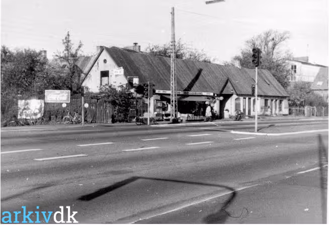 Gammelgård på Englandsvej 294 - med en stor del vejbanen. Yderst til højre ses lidt af Tårnby Skole.