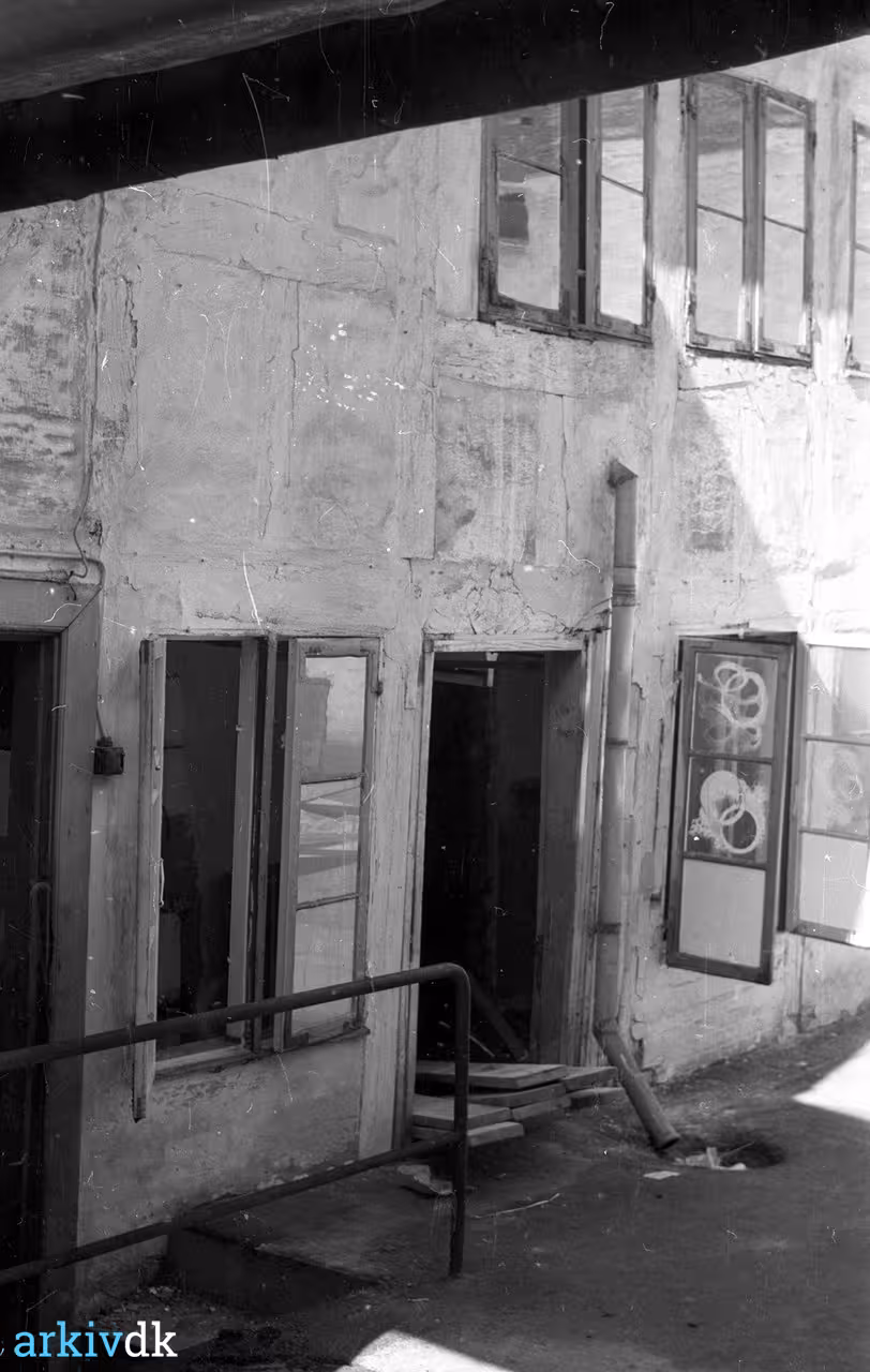 1 - 7 Gammelt hus i Pogestræde, sandsynligvis dér hvor Magasins bygning ligger i dag. Fotos fra baggården. Omkring 1960.