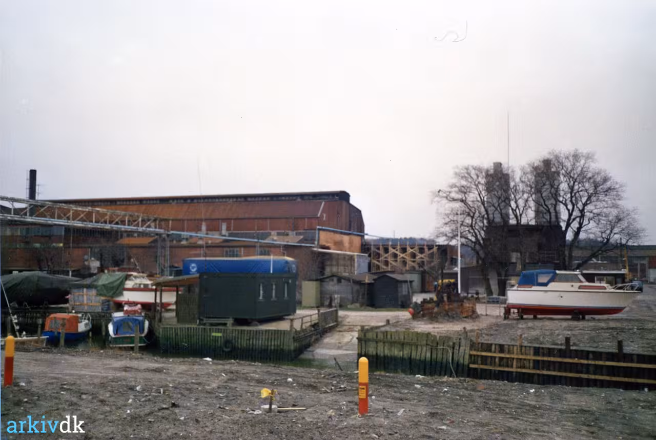 32 Frederiksværk Havn med De Danske Stålværker's port i baggrunden. Uge 2 - 1995 Frederiksværk Ugeblad / Halsnæs Posten 16x22
