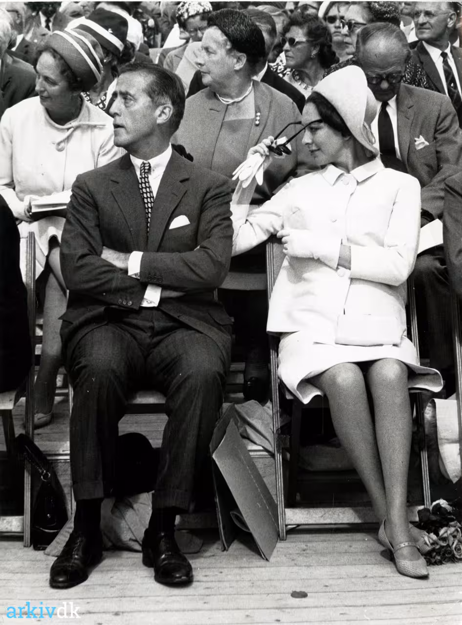Skuespillerinden Helle Virkner, gift med stats- og udenrigsminister Jens Otto Krag, overværer i begyndelsen af 1960'erne en begivenhed sammen med USA's ambassadør i Danmark (1961-64) William McCormick Blair.