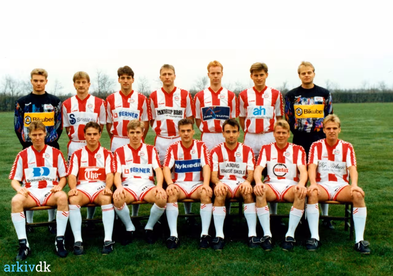 Bagest fra venstre: Lars Winde, Søren Thorst, Henrik Vandet Kristensen, Ib Simonsen, Erik Bo Andersen, Torben Boye og Thomas Gill. Forrest fra venstre: Peter Rasmussen, Calle Facius, Jens Jessen, Jan Pedersen, Lars Thomsen, Søren Dissing og Henrik Rasmussen. |