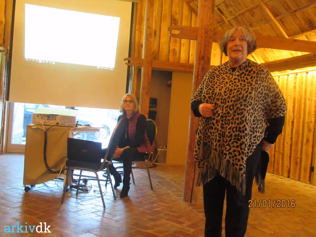Forrest i billedet formanden Anne Bjørner, der byder velkommen. Ved fremviseren, der satte teksten op på det store lærred, Elise Stendevad, Ramløse. Der kom ca. 30/40 mennesker til dette arrangement. |