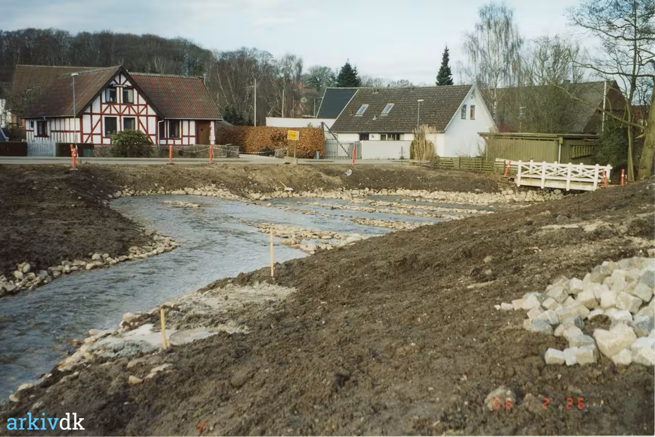 2. og 3. Odder Å forlægges. Bindingsvækshuset i baggrunden er senere, i 2018, nedrevet.